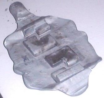 après forgeage on obtient deux paumelles mâle et deux paumelles femelle, plus une bavure que l'on enlèvera.