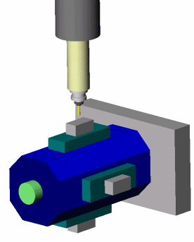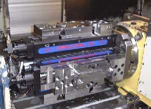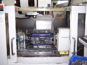 Cette machine à commande numérique est équipée d'un dispositif de montage spécial, qui est constitué de quatre étaux qui peuvent tourner et présenter ainsi toutes les faces d'une même pièce.